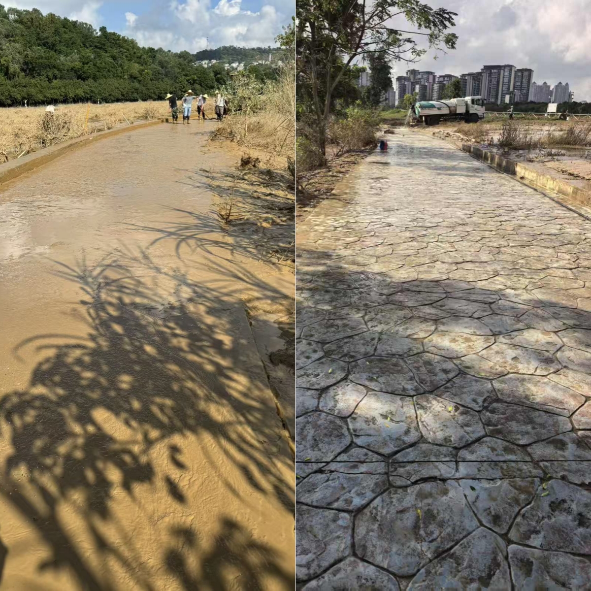 上午8點(diǎn),志愿者們攜帶鐵鏟、刮泥板、掃帚、垃圾袋等工具,準(zhǔn)時(shí)在指定區(qū)域集合?,F(xiàn)場(chǎng)的淤泥最深處達(dá)10余厘米,腳一踩便陷進(jìn)去難以拔出,鏟子剛插進(jìn)泥里就被牢牢黏住?!按蠹曳止じ?,先刮表層泥,再清垃圾!” 隨著一聲號(hào)召,志愿者們迅速分組行動(dòng):有的彎腰緊握刮泥板,順著步道紋理反復(fù)刮除黏連的淤泥;有的扛著水管,利用高壓水槍沖刷地面;有的拎著垃圾袋,蹲下身細(xì)致?lián)焓安卦诓菘p里的垃圾;有的則推著清運(yùn)車(chē),來(lái)回穿梭將裝滿淤泥和垃圾的袋子及時(shí)運(yùn)離現(xiàn)場(chǎng)…… 各個(gè)環(huán)節(jié)銜接緊密、井然有序。盡管天氣炎熱,汗水順著臉頰滑落、浸透衣衫,志愿者們的熱情與干勁絲毫未減,充分展現(xiàn)了國(guó)企的責(zé)任與擔(dān)當(dāng)。